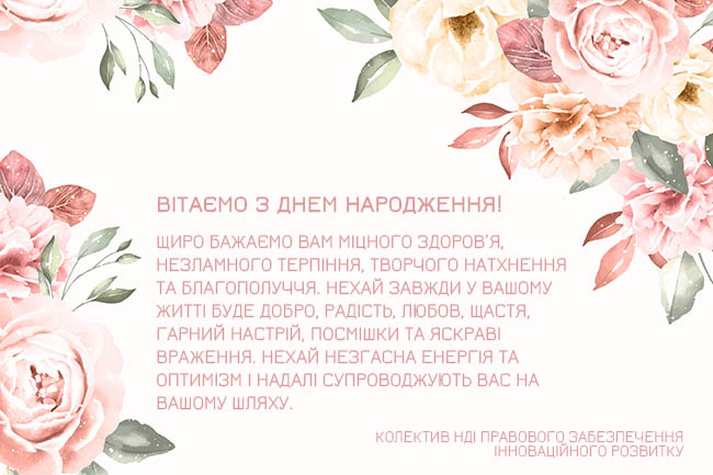 Сьогодні свій День народження святкує доктор юридих наук, завідувач наукового відділу загальних проблем формування та реалізації інноваційної політики Дмитрик Ольга Олександрівна. Колектив Інституту щиро вітає іменинника зі святом!