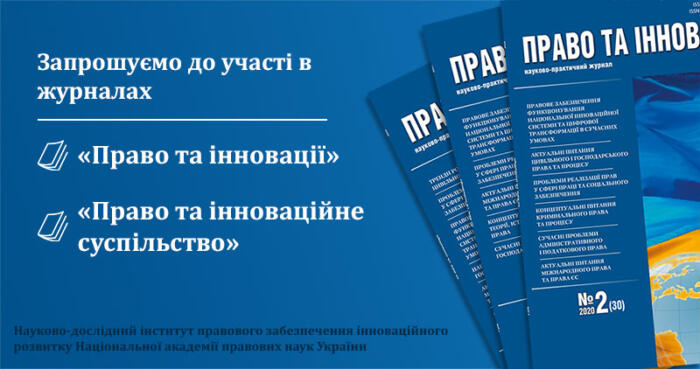 Редакція журналу «Право та інновації» Науково-дослідного інституту правового забезпечення інноваційного розвитку НАПрН України (м. Харків) запрошує до співпраці докторів наук, кандидатів наук, молодих науковців (ад’юнктів, аспірантів, здобувачів), викладачів вищої школи, студентів старших курсів, адвокатів, практикуючих юристів, співробітників правоохоронних органів та усіх, хто цікавиться досягненнями української юридичної науки.