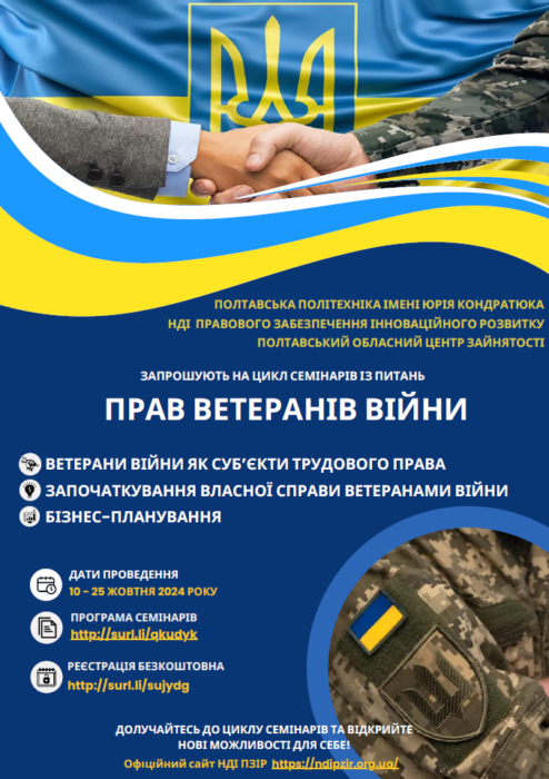 ЗАПРОШУЮТЬ НА ЦИКЛ СЕМІНАРІВ ІЗ ПИТАНЬ ПРАВ ВЕТЕРАНІВ ВІЙНИ